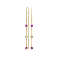 These Amethyst earrings and made in 14k Yellow Gold with top quality Natural Amethyst and Peridot gemstones. Elevate Your Look With The Delicate Allure Of Our Three-Stone Threader Earrings. Designed With A Sleek, Minimalist Threader Chain, Each Earring Features Three Shimmering Stones That Cascade Gracefully Along The Drop. The Fluid Movement And Lightweight Feel Offer A Modern Twist On Classic Elegance. Free shipping, returns, and a lifetime warranty make luxury worry-free