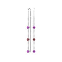 These Amethyst earrings and made in Palladium with top quality Natural Amethyst and Ruby gemstones. Elevate Your Look With The Delicate Allure Of Our Three-Stone Threader Earrings. Designed With A Sleek, Minimalist Threader Chain, Each Earring Features Three Shimmering Stones That Cascade Gracefully Along The Drop. The Fluid Movement And Lightweight Feel Offer A Modern Twist On Classic Elegance. Free shipping, returns, and a lifetime warranty make luxury worry-free