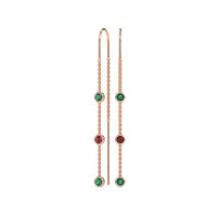 These Emerald earrings and made in 18K Rose Gold with top quality Natural Emerald and Ruby gemstones. Elevate Your Look With The Delicate Allure Of Our Three-Stone Threader Earrings. Designed With A Sleek, Minimalist Threader Chain, Each Earring Features Three Shimmering Stones That Cascade Gracefully Along The Drop. The Fluid Movement And Lightweight Feel Offer A Modern Twist On Classic Elegance. Free shipping, returns, and a lifetime warranty make luxury worry-free
