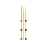 These London Blue Topaz earrings and made in 14k Yellow Gold with top quality Natural London Blue Topaz and Ruby gemstones. Elevate Your Look With The Delicate Allure Of Our Three-Stone Threader Earrings. Designed With A Sleek, Minimalist Threader Chain, Each Earring Features Three Shimmering Stones That Cascade Gracefully Along The Drop. The Fluid Movement And Lightweight Feel Offer A Modern Twist On Classic Elegance. Free shipping, returns, and a lifetime warranty make luxury worry-free