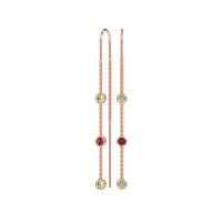 These Peridot earrings and made in 18K Rose Gold with top quality Natural Peridot and Ruby gemstones. Elevate Your Look With The Delicate Allure Of Our Three-Stone Threader Earrings. Designed With A Sleek, Minimalist Threader Chain, Each Earring Features Three Shimmering Stones That Cascade Gracefully Along The Drop. The Fluid Movement And Lightweight Feel Offer A Modern Twist On Classic Elegance. Free shipping, returns, and a lifetime warranty make luxury worry-free
