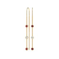 These Ruby earrings and made in 18k Yellow Gold with top quality Ruby and Lab Diamond gemstones. Elevate Your Look With The Delicate Allure Of Our Three-Stone Threader Earrings. Designed With A Sleek, Minimalist Threader Chain, Each Earring Features Three Shimmering Stones That Cascade Gracefully Along The Drop. The Fluid Movement And Lightweight Feel Offer A Modern Twist On Classic Elegance. Free shipping, returns, and a lifetime warranty make luxury worry-free