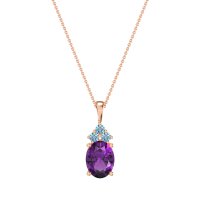 This Amethyst and Aquamarine Necklace is casted in 14K Rose Gold. This Women’s Classic necklace features exceptionally fine gemstones, on par with those found in the world's most exclusive boutiques and among the top 10% available globally. Elegant Cluster Pendant with A Central, Oval-cut Stone And A Trio Of Smaller Stones Above. Crafted in A Sleek Metal Setting, It Offers A Sophisticated Touch. This necklace comes with a complimentary 18-inch chain. Enjoy the confidence of our 30-day, stress-free return policy—with return shipping fully covered. Each piece is also accompanied by a Lifetime Warranty, ensuring lasting beauty and peace of mind.