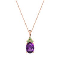 This Amethyst and Peridot Necklace is casted in 14K Rose Gold. This Women’s Classic necklace features exceptionally fine gemstones, on par with those found in the world's most exclusive boutiques and among the top 10% available globally. Elegant Cluster Pendant with A Central, Oval-cut Stone And A Trio Of Smaller Stones Above. Crafted in A Sleek Metal Setting, It Offers A Sophisticated Touch. This necklace comes with a complimentary 18-inch chain. Enjoy the confidence of our 30-day, stress-free return policy—with return shipping fully covered. Each piece is also accompanied by a Lifetime Warranty, ensuring lasting beauty and peace of mind.
