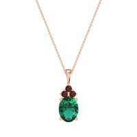 This Emerald and Ruby Necklace is casted in 14K Rose Gold. This Women’s Classic necklace features exceptionally fine gemstones, on par with those found in the world's most exclusive boutiques and among the top 10% available globally. Elegant Cluster Pendant with A Central, Oval-cut Stone And A Trio Of Smaller Stones Above. Crafted in A Sleek Metal Setting, It Offers A Sophisticated Touch. This necklace comes with a complimentary 18-inch chain. Enjoy the confidence of our 30-day, stress-free return policy—with return shipping fully covered. Each piece is also accompanied by a Lifetime Warranty, ensuring lasting beauty and peace of mind.