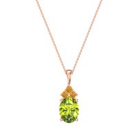 This Peridot and Citrine Necklace is casted in 14K Rose Gold. This Women’s Classic necklace features exceptionally fine gemstones, on par with those found in the world's most exclusive boutiques and among the top 10% available globally. Elegant Cluster Pendant with A Central, Oval-cut Stone And A Trio Of Smaller Stones Above. Crafted in A Sleek Metal Setting, It Offers A Sophisticated Touch. This necklace comes with a complimentary 18-inch chain. Enjoy the confidence of our 30-day, stress-free return policy—with return shipping fully covered. Each piece is also accompanied by a Lifetime Warranty, ensuring lasting beauty and peace of mind.