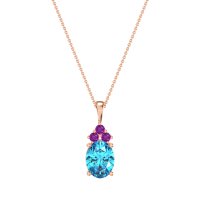 This Swiss Blue Topaz and Amethyst Necklace is casted in 14K Rose Gold. This Women’s Classic necklace features exceptionally fine gemstones, on par with those found in the world's most exclusive boutiques and among the top 10% available globally. Elegant Cluster Pendant with A Central, Oval-cut Stone And A Trio Of Smaller Stones Above. Crafted in A Sleek Metal Setting, It Offers A Sophisticated Touch. This necklace comes with a complimentary 18-inch chain. Enjoy the confidence of our 30-day, stress-free return policy—with return shipping fully covered. Each piece is also accompanied by a Lifetime Warranty, ensuring lasting beauty and peace of mind.