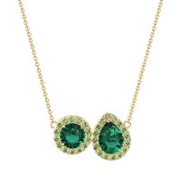 This Emerald and Peridot Necklace is casted in 14k Yellow Gold. This Women’s Halo necklace features exceptionally fine gemstones, on par with those found in the world's most exclusive boutiques and among the top 10% available globally. This Enchanting "toi Et Moi" Pendant Beautifully Unites A Pear-shaped And A Round Stone, Set intimately Side-by-side. Each Gem Is Embraced By Its Own Sparkling Halo, Creating A Harmonious And Radiant Symbol Of Connection. This necklace comes with a complimentary 18-inch chain. Enjoy the confidence of our 30-day, stress-free return policy—with return shipping fully covered. Each piece is also accompanied by a Lifetime Warranty, ensuring lasting beauty and peace of mind.