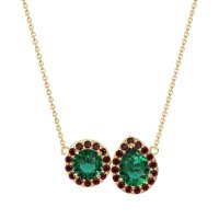 This Lab Emerald and Ruby Necklace is casted in 14k Yellow Gold. This Women’s Halo necklace features exceptionally fine gemstones, on par with those found in the world's most exclusive boutiques and among the top 10% available globally. This Enchanting "toi Et Moi" Pendant Beautifully Unites A Pear-shaped And A Round Stone, Set intimately Side-by-side. Each Gem Is Embraced By Its Own Sparkling Halo, Creating A Harmonious And Radiant Symbol Of Connection. This necklace comes with a complimentary 18-inch chain. Enjoy the confidence of our 30-day, stress-free return policy—with return shipping fully covered. Each piece is also accompanied by a Lifetime Warranty, ensuring lasting beauty and peace of mind.