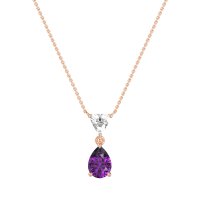 This Amethyst and Lab Diamond Necklace is casted in 18K Rose Gold. This Women’s Classic necklace features exceptionally fine gemstones, on par with those found in the world's most exclusive boutiques and among the top 10% available globally. Striking Geometric Pendant Featuring A Triangular Stone Above A Larger, Pear-shaped Stone. Sleek Metalwork Enhances The Modern Design. This necklace comes with a complimentary 18-inch chain. Enjoy the confidence of our 30-day, stress-free return policy—with return shipping fully covered. Each piece is also accompanied by a Lifetime Warranty, ensuring lasting beauty and peace of mind.