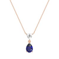 This Blue Sapphire and Lab Diamond Necklace is casted in 18K Rose Gold. This Women’s Classic necklace features exceptionally fine gemstones, on par with those found in the world's most exclusive boutiques and among the top 10% available globally. Striking Geometric Pendant Featuring A Triangular Stone Above A Larger, Pear-shaped Stone. Sleek Metalwork Enhances The Modern Design. This necklace comes with a complimentary 18-inch chain. Enjoy the confidence of our 30-day, stress-free return policy—with return shipping fully covered. Each piece is also accompanied by a Lifetime Warranty, ensuring lasting beauty and peace of mind.