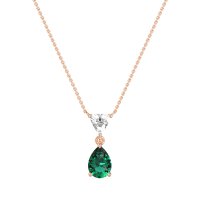 This Emerald and Lab Diamond Necklace is casted in 18K Rose Gold. This Women’s Classic necklace features exceptionally fine gemstones, on par with those found in the world's most exclusive boutiques and among the top 10% available globally. Striking Geometric Pendant Featuring A Triangular Stone Above A Larger, Pear-shaped Stone. Sleek Metalwork Enhances The Modern Design. This necklace comes with a complimentary 18-inch chain. Enjoy the confidence of our 30-day, stress-free return policy—with return shipping fully covered. Each piece is also accompanied by a Lifetime Warranty, ensuring lasting beauty and peace of mind.