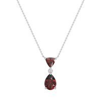 This Ruby and Garnet Necklace is casted in 14k White Gold. This Women’s Classic necklace features exceptionally fine gemstones, on par with those found in the world's most exclusive boutiques and among the top 10% available globally. Striking Geometric Pendant Featuring A Triangular Stone Above A Larger, Pear-shaped Stone. Sleek Metalwork Enhances The Modern Design. This necklace comes with a complimentary 18-inch chain. Enjoy the confidence of our 30-day, stress-free return policy—with return shipping fully covered. Each piece is also accompanied by a Lifetime Warranty, ensuring lasting beauty and peace of mind.