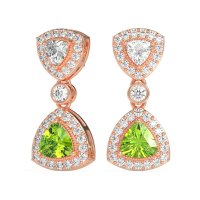 These 14K Rose Gold Peridot earrings feature fine quality with Peridot, Diamond and Lab Diamond gemstones. These Exquisite Dangling Drop Earrings Showcase Two Brilliant Trillion-shaped Stones, Each Surrounded By A Dazzling Milgrain-detailed Halo. Adding A Refined Touch, A Single, Elegantly Bezel-set Round Stone Gracefully Separates The Two Trillion Halo Elements. This Intricate Design Combines Classic Artistry With Captivating Sparkle, Ensuring A Truly Unique And Sophisticated Statement. Free shipping, returns, and a lifetime warranty make luxury worry-free.