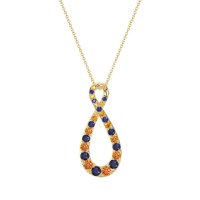 This Blue Sapphire and Citrine Necklace is casted in 14k Yellow Gold. This Women’s Fashion necklace features exceptionally fine gemstones, on par with those found in the world's most exclusive boutiques and among the top 10% available globally. Dynamic Pendant Featuring A Gracefully Twisted infinity Symbol, Entirely Set with Stones That Gradually increase in Size Along The Curve. This necklace comes with a complimentary 18-inch chain. Enjoy the confidence of our 30-day, stress-free return policy—with return shipping fully covered. Each piece is also accompanied by a Lifetime Warranty, ensuring lasting beauty and peace of mind.