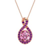 This Pink Tourmaline and Amethyst Necklace is casted in 14K Rose Gold. This Women’s Fashion necklace features exceptionally fine gemstones, on par with those found in the world's most exclusive boutiques and among the top 10% available globally. This Twisted infinity Oval Pendant Features An Oval Center Stone Encircled By A Halo Of Smaller Stones. The Halo Is Gracefully intertwined with An infinity Symbol. This necklace comes with a complimentary 18-inch chain. Enjoy the confidence of our 30-day, stress-free return policy—with return shipping fully covered. Each piece is also accompanied by a Lifetime Warranty, ensuring lasting beauty and peace of mind.