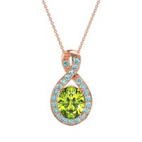 This Peridot and Swiss Blue Topaz Necklace is casted in 14K Rose Gold. This Women’s Fashion necklace features exceptionally fine gemstones, on par with those found in the world's most exclusive boutiques and among the top 10% available globally. This Twisted infinity Oval Pendant Features An Oval Center Stone Encircled By A Halo Of Smaller Stones. The Halo Is Gracefully intertwined with An infinity Symbol. This necklace comes with a complimentary 18-inch chain. Enjoy the confidence of our 30-day, stress-free return policy—with return shipping fully covered. Each piece is also accompanied by a Lifetime Warranty, ensuring lasting beauty and peace of mind.