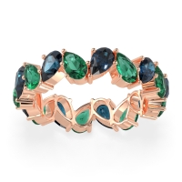 This London Blue Topaz wedding ring is casted in 14K Rose Gold and set with fine quality London Blue Topaz and Emerald. All of the gemstones we use are of the top 10% available, those found in fine quality boutiques across the world. This London Blue Topaz wedding band can also be added to your collection of minimalist London Blue Topaz rings. This Eternity Band Boasts A Mesmerizing Design with Pear-shaped Stones Facing in Opposite Directions. Free shipping, returns, resizing, and a lifetime warranty ensure you love your purchase.