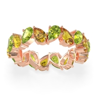 This Peridot wedding ring is casted in 18K Rose Gold and set with fine quality Peridot and Citrine. All of the gemstones we use are of the top 10% available, those found in fine quality boutiques across the world. This Peridot wedding band can also be added to your collection of minimalist Peridot rings. This Eternity Band Boasts A Mesmerizing Design with Pear-shaped Stones Facing in Opposite Directions. Free shipping, returns, resizing, and a lifetime warranty ensure you love your purchase.