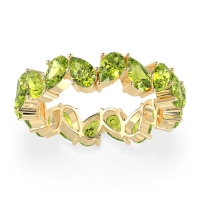 This Peridot wedding ring is set with AAAA Peridot, amongst the top 10% of material available. This ring can be casted in your choice of 9 metals. Peridot rings can be worn as gemstone wedding rings, or can even be stacked with your other gemstone rings. This Eternity Band Boasts A Mesmerizing Design with Pear-shaped Stones Facing in Opposite Directions. Choose from a variety of gems and metals to make truly unique custom rings! Free shipping, returns, resizing, and a lifetime warranty make choosing this product easy.