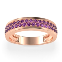 This Amethyst wedding ring is set with AAAA Amethyst, amongst the top 10% of material available. This ring can be casted in your choice of 9 metals. Amethyst rings can be worn as gemstone wedding rings, or can even be stacked with your other gemstone rings. This Unique Ring Boasts A Dual Row Of Gemstones, Aligned in The Center And Going Halfway Down The Band. Choose from a variety of gems and metals to make truly unique custom rings! Free shipping, returns, resizing, and a lifetime warranty make choosing this product easy.