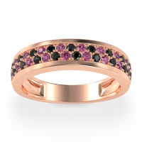 This Black Onyx wedding ring is casted in 18K Rose Gold and set with fine quality Black Onyx and Pink Tourmaline. All of the gemstones we use are of the top 10% available, those found in fine quality boutiques across the world. This Black Onyx wedding band can also be added to your collection of minimalist Black Onyx rings. This Unique Ring Boasts A Dual Row Of Gemstones, Aligned in The Center And Going Halfway Down The Band. Free shipping, returns, resizing, and a lifetime warranty ensure you love your purchase.
