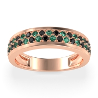 This Emerald wedding ring is casted in 18K Rose Gold and set with fine quality Emerald and Black Onyx. All of the gemstones we use are of the top 10% available, those found in fine quality boutiques across the world. This Emerald wedding band can also be added to your collection of minimalist Emerald rings. This Unique Ring Boasts A Dual Row Of Gemstones, Aligned in The Center And Going Halfway Down The Band. Free shipping, returns, resizing, and a lifetime warranty ensure you love your purchase.