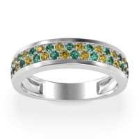 This Emerald wedding ring is casted in 14k White Gold and set with fine quality Emerald and Citrine. All of the gemstones we use are of the top 10% available, those found in fine quality boutiques across the world. This Emerald wedding band can also be added to your collection of minimalist Emerald rings. This Unique Ring Boasts A Dual Row Of Gemstones, Aligned in The Center And Going Halfway Down The Band. Free shipping, returns, resizing, and a lifetime warranty ensure you love your purchase.