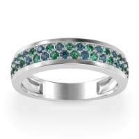 This Emerald wedding ring is casted in 14k White Gold and set with fine quality Emerald and London Blue Topaz. All of the gemstones we use are of the top 10% available, those found in fine quality boutiques across the world. This Emerald wedding band can also be added to your collection of minimalist Emerald rings. This Unique Ring Boasts A Dual Row Of Gemstones, Aligned in The Center And Going Halfway Down The Band. Free shipping, returns, resizing, and a lifetime warranty ensure you love your purchase.