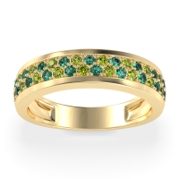 This Emerald wedding ring is casted in 18k Yellow Gold and set with fine quality Emerald and Peridot. All of the gemstones we use are of the top 10% available, those found in fine quality boutiques across the world. This Emerald wedding band can also be added to your collection of minimalist Emerald rings. This Unique Ring Boasts A Dual Row Of Gemstones, Aligned in The Center And Going Halfway Down The Band. Free shipping, returns, resizing, and a lifetime warranty ensure you love your purchase.