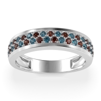This Garnet wedding ring is casted in 18k White Gold and set with fine quality Garnet and London Blue Topaz. All of the gemstones we use are of the top 10% available, those found in fine quality boutiques across the world. This Garnet wedding band can also be added to your collection of minimalist Garnet rings. This Unique Ring Boasts A Dual Row Of Gemstones, Aligned in The Center And Going Halfway Down The Band. Free shipping, returns, resizing, and a lifetime warranty ensure you love your purchase.