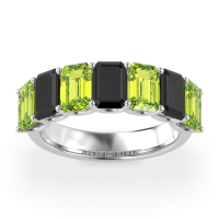 This Peridot wedding ring is casted in Palladium and set with fine quality Peridot and Black Onyx. All of the gemstones we use are of the top 10% available, those found in fine quality boutiques across the world. This Peridot wedding band can also be added to your collection of minimalist Peridot rings. A Beautiful Half-eternity Design with Emerald-cut Stones Highlighted By Modern U-prong Settings. Free shipping, returns, resizing, and a lifetime warranty ensure you love your purchase.