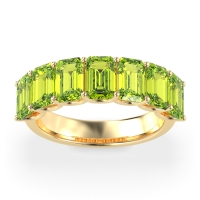 This Peridot wedding ring is set with AAAA Peridot, amongst the top 10% of material available. This ring can be casted in your choice of 9 metals. Peridot rings can be worn as gemstone wedding rings, or can even be stacked with your other gemstone rings. A Beautiful Half-eternity Design with Emerald-cut Stones Highlighted By Modern U-prong Settings. Choose from a variety of gems and metals to make truly unique custom rings! Free shipping, returns, resizing, and a lifetime warranty make choosing this product easy.