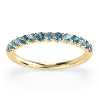 This Aquamarine wedding ring is casted in 18k Yellow Gold and set with fine quality Aquamarine and London Blue Topaz. All of the gemstones we use are of the top 10% available, those found in fine quality boutiques across the world. This Aquamarine wedding band can also be added to your collection of minimalist Aquamarine rings. The Half Eternity Band Features Stones Set Halfway Down The Shank, in A U Prong Setting. Free shipping, returns, resizing, and a lifetime warranty ensure you love your purchase.