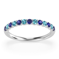 This Blue Sapphire wedding ring is casted in Palladium and set with fine quality Blue Sapphire and Swiss Blue Topaz. All of the gemstones we use are of the top 10% available, those found in fine quality boutiques across the world. This Blue Sapphire wedding band can also be added to your collection of minimalist Blue Sapphire rings. The Half Eternity Band Features Stones Set Halfway Down The Shank, in A U Prong Setting. Free shipping, returns, resizing, and a lifetime warranty ensure you love your purchase.