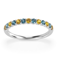 This Citrine wedding ring is casted in Platinum and set with fine quality Citrine and London Blue Topaz. All of the gemstones we use are of the top 10% available, those found in fine quality boutiques across the world. This Citrine wedding band can also be added to your collection of minimalist Citrine rings. The Half Eternity Band Features Stones Set Halfway Down The Shank, in A U Prong Setting. Free shipping, returns, resizing, and a lifetime warranty ensure you love your purchase.
