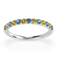 This London Blue Topaz wedding ring is casted in Platinum and set with fine quality London Blue Topaz and Citrine. All of the gemstones we use are of the top 10% available, those found in fine quality boutiques across the world. This London Blue Topaz wedding band can also be added to your collection of minimalist London Blue Topaz rings. The Half Eternity Band Features Stones Set Halfway Down The Shank, in A U Prong Setting. Free shipping, returns, resizing, and a lifetime warranty ensure you love your purchase.