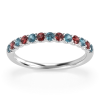This London Blue Topaz wedding ring is casted in 14k White Gold and set with fine quality London Blue Topaz and Ruby. All of the gemstones we use are of the top 10% available, those found in fine quality boutiques across the world. This London Blue Topaz wedding band can also be added to your collection of minimalist London Blue Topaz rings. The Half Eternity Band Features Stones Set Halfway Down The Shank, in A U Prong Setting. Free shipping, returns, resizing, and a lifetime warranty ensure you love your purchase.