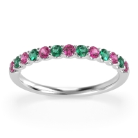 This Pink Tourmaline wedding ring is casted in Palladium and set with fine quality Pink Tourmaline and Emerald. All of the gemstones we use are of the top 10% available, those found in fine quality boutiques across the world. This Pink Tourmaline wedding band can also be added to your collection of minimalist Pink Tourmaline rings. The Half Eternity Band Features Stones Set Halfway Down The Shank, in A U Prong Setting. Free shipping, returns, resizing, and a lifetime warranty ensure you love your purchase.