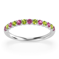 This Pink Tourmaline wedding ring is casted in Platinum and set with fine quality Pink Tourmaline and Peridot. All of the gemstones we use are of the top 10% available, those found in fine quality boutiques across the world. This Pink Tourmaline wedding band can also be added to your collection of minimalist Pink Tourmaline rings. The Half Eternity Band Features Stones Set Halfway Down The Shank, in A U Prong Setting. Free shipping, returns, resizing, and a lifetime warranty ensure you love your purchase.