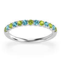 This Peridot wedding ring is casted in Platinum and set with fine quality Peridot and Swiss Blue Topaz. All of the gemstones we use are of the top 10% available, those found in fine quality boutiques across the world. This Peridot wedding band can also be added to your collection of minimalist Peridot rings. The Half Eternity Band Features Stones Set Halfway Down The Shank, in A U Prong Setting. Free shipping, returns, resizing, and a lifetime warranty ensure you love your purchase.