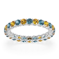 This London Blue Topaz wedding ring is casted in Platinum and set with fine quality London Blue Topaz and Citrine. All of the gemstones we use are of the top 10% available, those found in fine quality boutiques across the world. This London Blue Topaz wedding band can also be added to your collection of minimalist London Blue Topaz rings. This Eternity Band Showcases Round Stones Elevated By U-prongs. Free shipping, returns, resizing, and a lifetime warranty ensure you love your purchase.