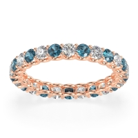 This Lab Diamond wedding ring is casted in 14K Rose Gold and set with fine quality Lab Diamond and London Blue Topaz. All of the gemstones we use are of the top 10% available, those found in fine quality boutiques across the world. This Lab Diamond wedding band can also be added to your collection of minimalist Lab Diamond rings. This Eternity Band Showcases Round Stones Elevated By U-prongs. Free shipping, returns, resizing, and a lifetime warranty ensure you love your purchase.