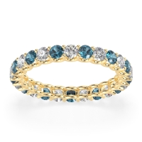 This Lab Diamond wedding ring is casted in 18k Yellow Gold and set with fine quality Lab Diamond and London Blue Topaz. All of the gemstones we use are of the top 10% available, those found in fine quality boutiques across the world. This Lab Diamond wedding band can also be added to your collection of minimalist Lab Diamond rings. This Eternity Band Showcases Round Stones Elevated By U-prongs. Free shipping, returns, resizing, and a lifetime warranty ensure you love your purchase.