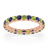 This Peridot wedding ring is casted in 18K Rose Gold and set with fine quality Peridot and Blue Sapphire. All of the gemstones we use are of the top 10% available, those found in fine quality boutiques across the world. This Peridot wedding band can also be added to your collection of minimalist Peridot rings. This Eternity Band Showcases Round Stones Elevated By U-prongs. Free shipping, returns, resizing, and a lifetime warranty ensure you love your purchase.