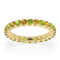 This Peridot wedding ring is casted in 18k Yellow Gold and set with fine quality Peridot and Citrine. All of the gemstones we use are of the top 10% available, those found in fine quality boutiques across the world. This Peridot wedding band can also be added to your collection of minimalist Peridot rings. This Eternity Band Showcases Round Stones Elevated By U-prongs. Free shipping, returns, resizing, and a lifetime warranty ensure you love your purchase.