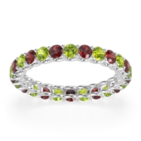 This Peridot wedding ring is casted in Platinum and set with fine quality Peridot and Ruby. All of the gemstones we use are of the top 10% available, those found in fine quality boutiques across the world. This Peridot wedding band can also be added to your collection of minimalist Peridot rings. This Eternity Band Showcases Round Stones Elevated By U-prongs. Free shipping, returns, resizing, and a lifetime warranty ensure you love your purchase.