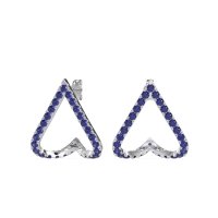 These Palladium Blue Sapphire earrings feature top quality Natural Blue Sapphire gemstones. Stay On-trend With These Stylish V-shaped Huggie Earrings, Designed For A Perfectly Modern Aesthetic. Free shipping, returns, and a lifetime warranty make luxury worry-free