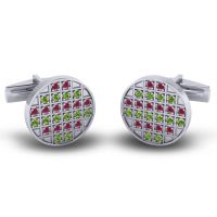 These personalized cufflinks feature Ruby and Peridot. We only use the top 10% of gemstones available, every facet meticulously placed, they create a masterpiece of radiance that captivates the senses. This Pair Of Cufflinks Features A Gemstone And Metal Design That Combines Contrasting Forms To Create A Unique And Playful Look. Each Cufflink Hosts 24 Brilliant Round Gems Of Your Choice in A Pave Setting Over The Face Of The Piece. For the one who appreciates the finer things, these mens cufflinks are an unspoken badge of distinction. Choose from a variety of gems to make a truly unique pair of custom cufflinks. Enjoy free shipping, free returns and a lifetime warranty.