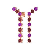 These Amethyst earrings and made in 18K Rose Gold with top quality Natural Amethyst and Ruby gemstones. These Dangle Earrings Feature A Captivating Cascading "waterfall" Design, With Multiple Prong-set Stones Arranged To Create A Fluid, Shimmering Effect. The Intricate Setting Allows Light To Brilliantly Illuminate Each Gem, Resulting In Exceptional Sparkle And Elegant Movement. Perfect For Adding A Luxurious And Dynamic Touch To Any Formal Or Special Occasion Ensemble. Free shipping, returns, and a lifetime warranty make luxury worry-free